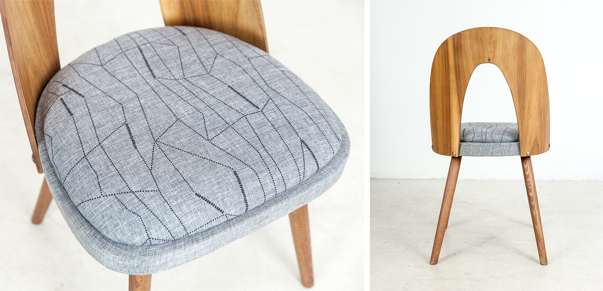 We saved old, thrown-away furnitures and gave them a new life with exciting supplements and replacement parts, uniquely designed upholstery. We thrived to keep their existing values, mixing with a fresh new perspective - but always adapting to the opportunities given by the original furniture, its history and soul. Our curiosity encourages us to create special projects and we love experiments with materials and new design methods. It was always important, that even though the furnitures cover a broad spectrum stylistically, they still show a coherent brand look. We used brand colors all through the works, including upholstery and painted surfaces. We repeatedly used similar solutions, such as the scuffs on the furniture legs.